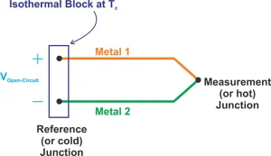 هنگام اتصال ترموکوپل به ولت‌متر، چالش مهمی به نام اتصال مرجع پدیدار می‌شود. این اتصال جدید می‌تواند ولتاژ اضافی تولید کند، که ممکن است ناشی از دمای آن نقطه باشد. بنابراین، ولتاژ ثبت‌شده ممکن است دما را به درستی نشان ندهد. برای دستیابی به دقت بالا در اندازه‌گیری دما، ضروری است که تأثیر دما در این اتصال مرجع تصحیح و جبران شود.